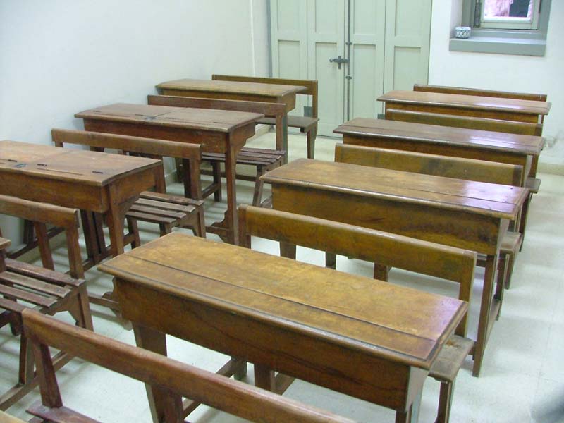 Desde fuera todavía guarda esa majestuosidad que solo los años ataca. Encima de la puerta derecha se leía en un cartel con letras hormigonadas, niñas y el de la izquierda, niños. Nosotros siempre entrábamos por la derecha, todos y todas. Los pupitres eran de madera, muy pesados y pegados de dos en dos.Pero,¿qué era lo peor para una niña?